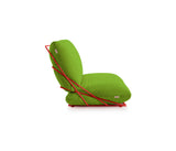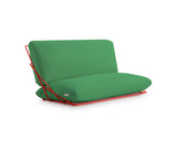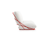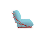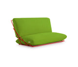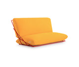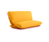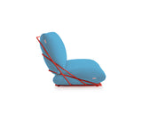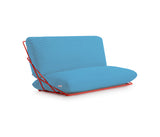 Un asiento con un carácter desenfadado y casual, pero al mismo tiempo elegante y colorista. La expresión más genuina del estilo Diabla. Este es el sofá de dos plazas de la colección Valentina Outdoor, una pieza informal y con un estilo especialmente seductor. Su creadora, Alejandra Gandía-Blasco Lloret, se propuso diseñar un sofá utilizando solamente dos cojines y el mínimo de elementos. Su diseño a ras de suelo permite repantigarse en toda regla a dos personas.